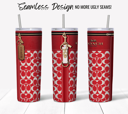 NY Coach Marvel Red and Cream Monogram Leather Texture