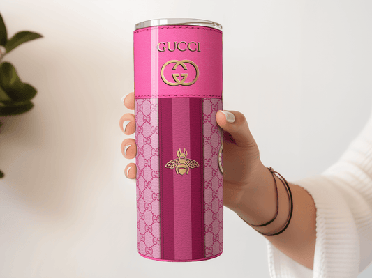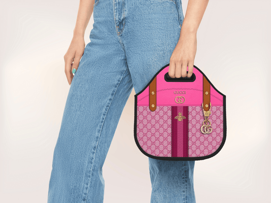 Gucci Pink Monogram with Pink Strap Lunch Tote and Tumbler Set Leather Texture