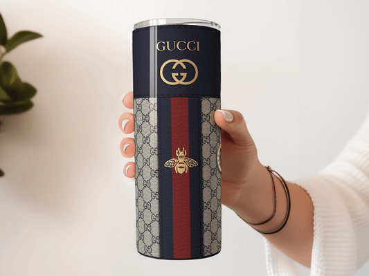 Gucci Navy Blue Monogram Lunch Tote and Tumbler Set Leather Texture