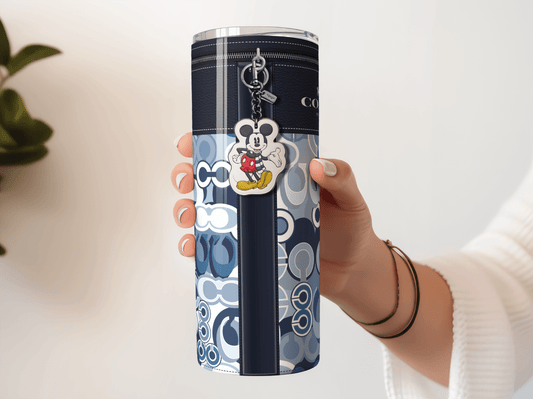 NY Coach Navy Leather Blue Monogram with Mickey Key Chain Plain