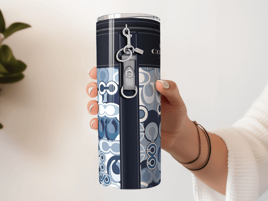 NY Coach Navy Leather Blue and White Monogram Fabric Texture