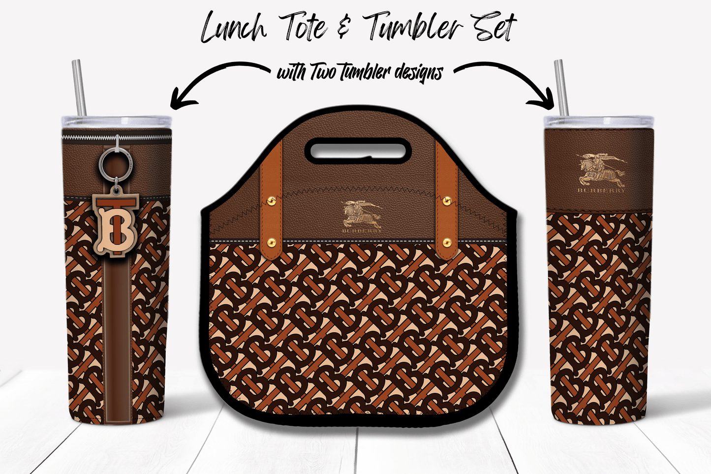 Burberry Dark Brown Monogram Lunch Tote and Tumbler Set