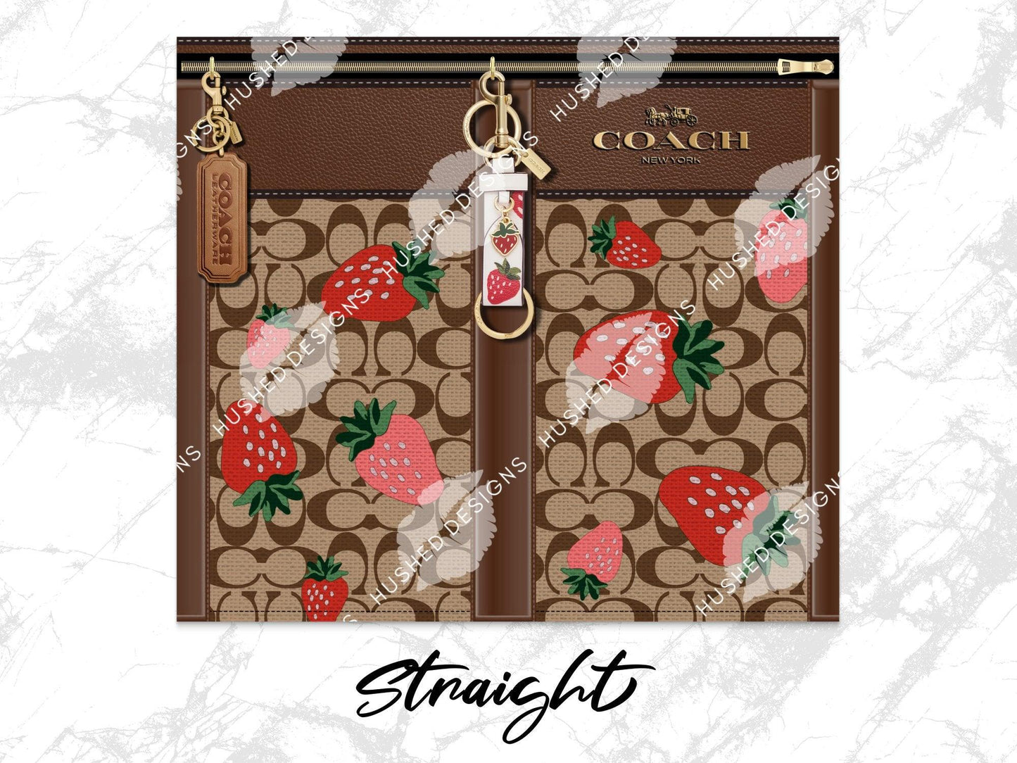 NY Coach Brown Monogram with Strawberries Fabric Texture