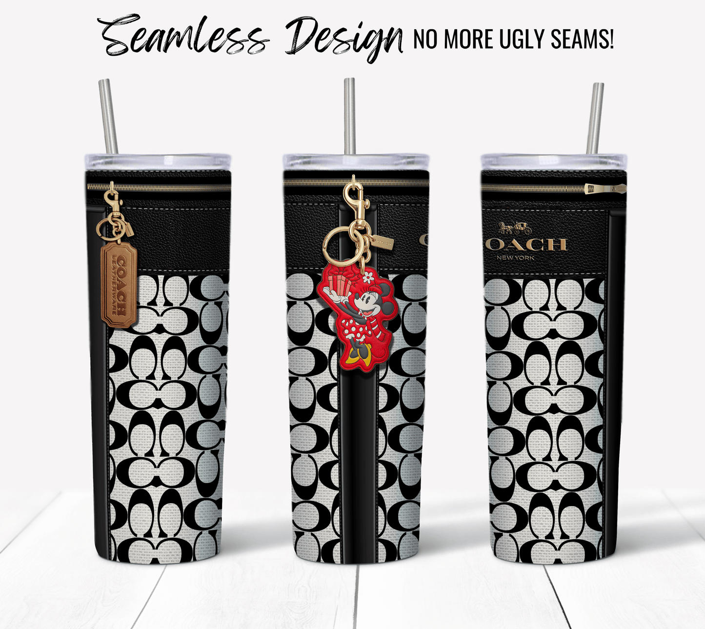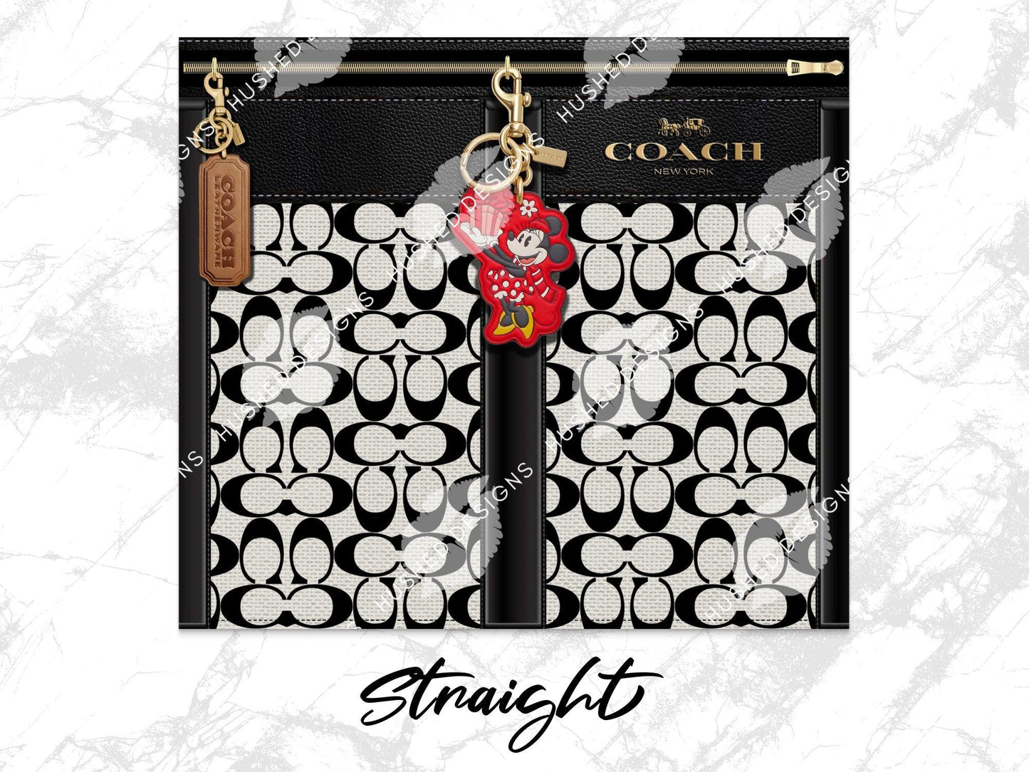 NY Coach Black and White Monogram with Minnie Key Chain Fabric Texture