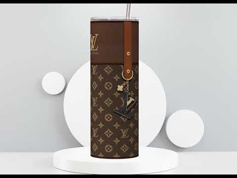 LV Brown Monogram Lunch Tote and Tumbler Set Fabric Texture