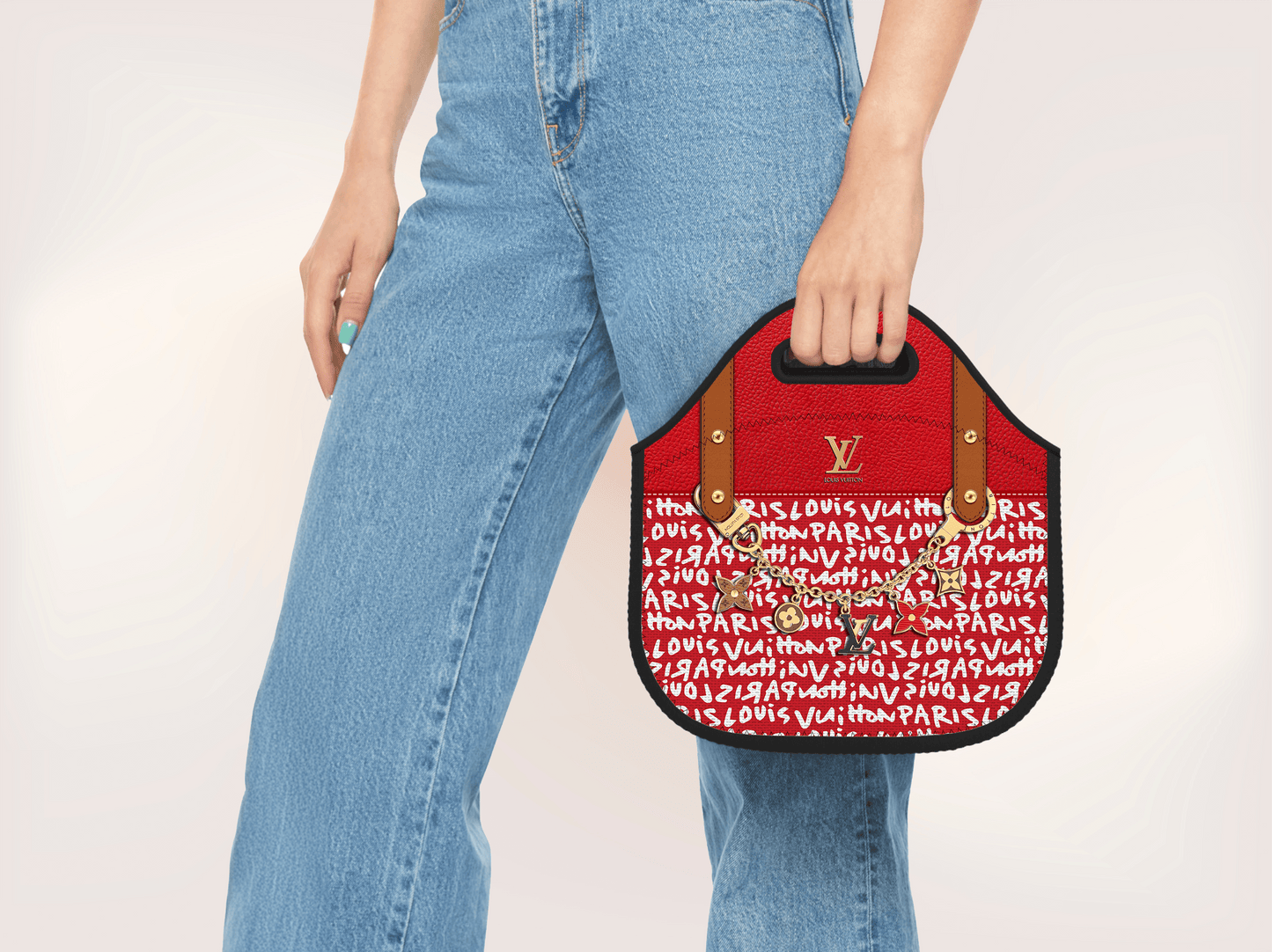 LV Red Graffiti Monogram Lunch Tote and Tumbler Set Fabric Texture