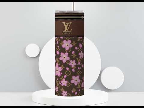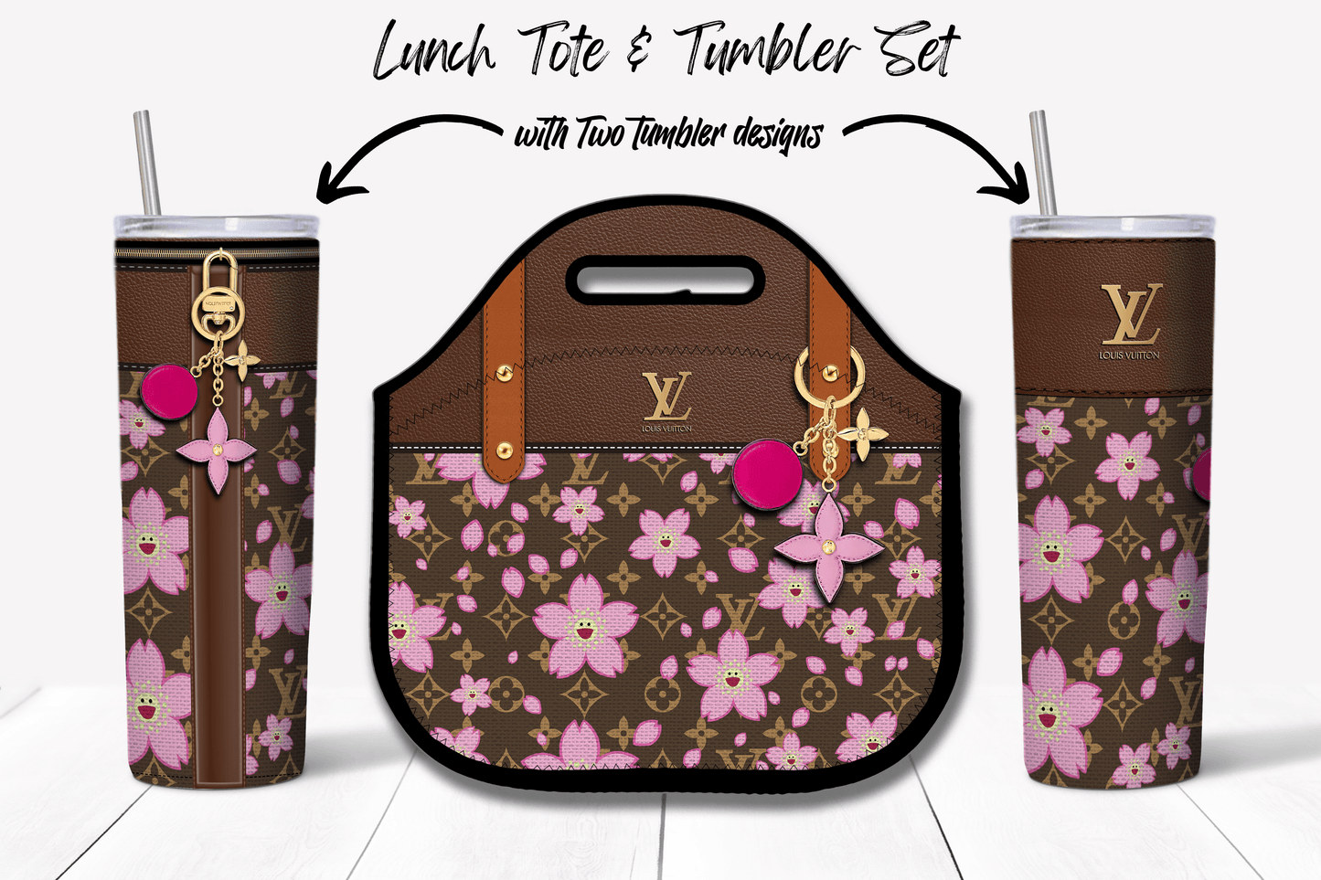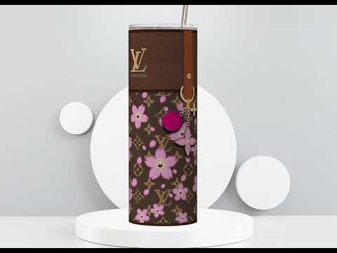 LV Brown Cherry Blossom Lunch Tote and Tumbler Set Fabric Texture