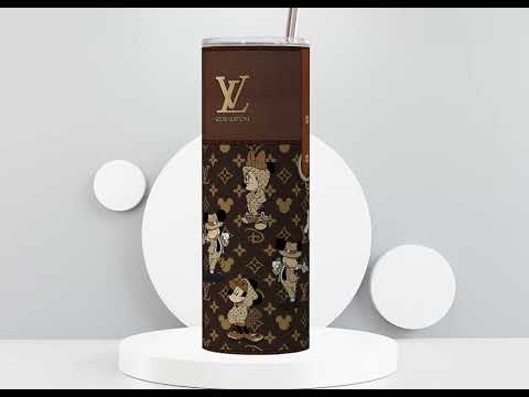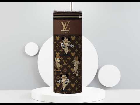 LV Brown Mickey & Minnie Monogram Lunch Tote and Tumbler Set Fabric Texture